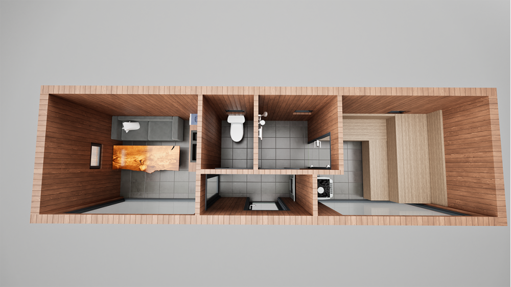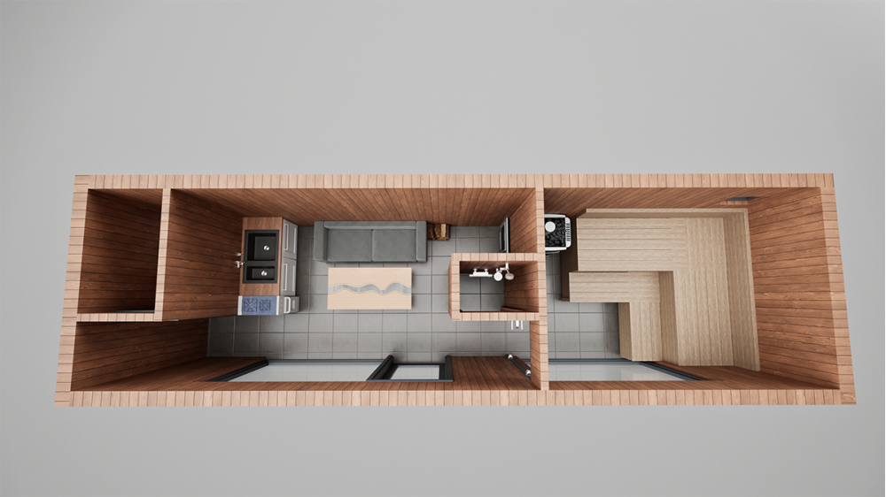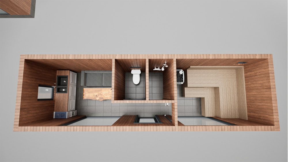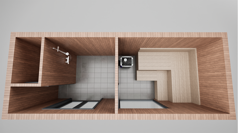 Стены, потолок: вагонка штиль сорт А/Б.Пол: плитка, цвет: графит.